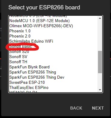 Seleccionamos Sonoff Basic y pulsamos en NEST