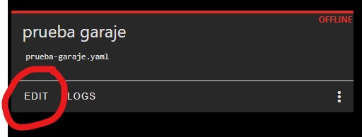 Ahora en nuestro panel de ESPHome, veremos nuestro dispositivo y pulsamos en EDIT.